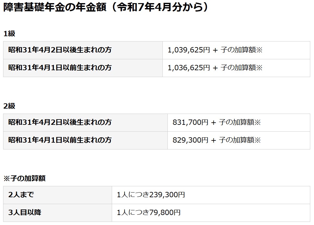 参考:令和7年度の年金額(日本年金機構「障害基礎年金の年金額」)